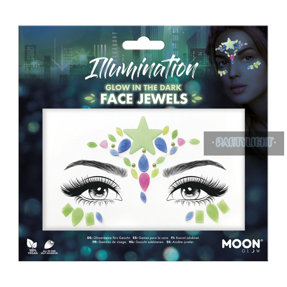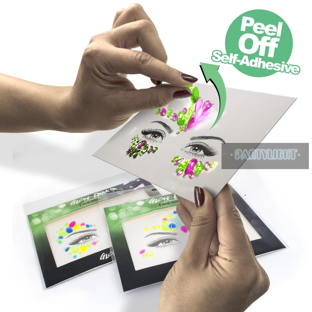 Foszforeszkáló+UV öntapadós arc-ékszer szett